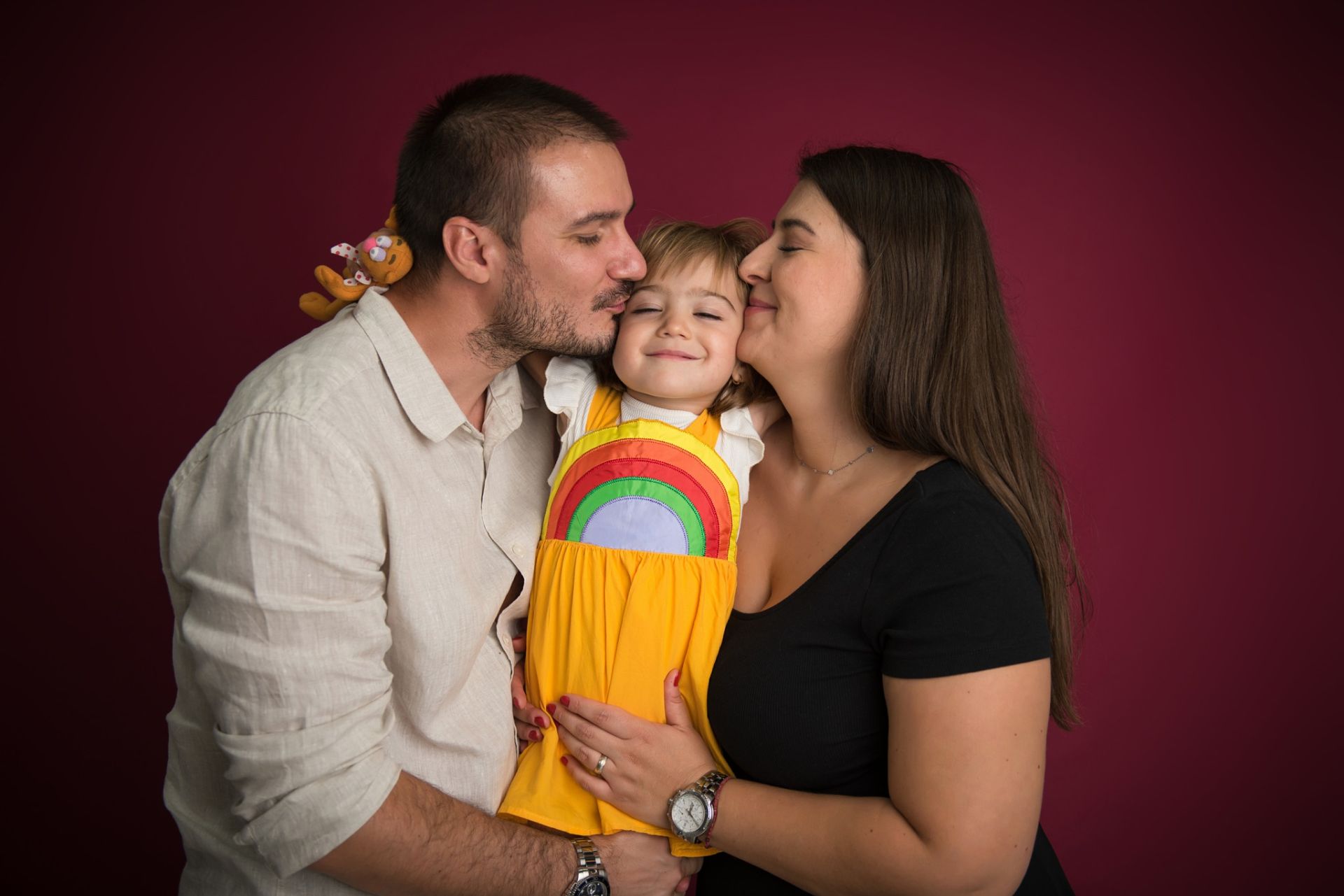 „La început aveam un spaţiu închiriat în care nu aveam cum să agăţ fundalul, să pun diverse obiecte aşa că am cumpărat apartamentul special pentru şedinţele foto de Crăciun. Mai fac acolo şi şedinţele pentru gravide, pentru că fără brad, deja este alt decor elegant care merge la orice. Am cumpărat diverse obiecte frumoase, cu aspect vintage, de exemplu. Am şi o copaie de 120 de ani pentru şedinţele foto cu bebeluşi. Obiectele acestea fac diferenţa. În plus, pentru a aduce diferenţiatorul, că sunt mulţi care fac astfel de şedinţe, în fiecare an schimbăm decorul. Oricum, având clienţi vechi, care vin an de an, e normal să schimbăm decorul ca să nu aibă oamenii poze la fel. Doar pomul de Crăciun rămâne acelaşi, dar în rest schimbăm cromatica, fundele, obiectele, tot. E adevărat, sunt multe investiţii, dar întotdeauna ne gândim şi la satisfacţia emoţională, nu numai la bani. Ne bucurăm să vedem clienţii mulţumiţi, care revin în fiecare an, nu numai de Crăciun, ci şi cu alte ocazii. Mie îmi place să lucrez cu oamenii, nu mă sperie lucrul cu copiii, am şi eu doi, şi chiar dacă de multe ori micuţii îşi pierd răbdarea, o şedinţă foto durând cam 40 de minute, mă străduiesc să îi atrag cu câte ceva să-i mai ţin puţin în faţa obiectivului”, spune George.