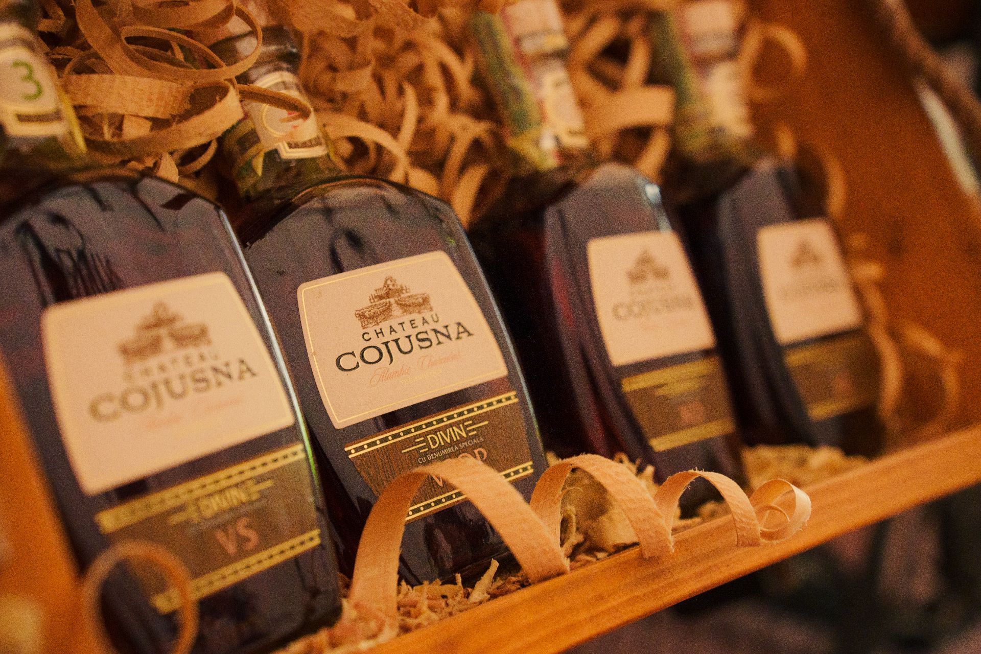 Distilatului din vin, coniacul pe care îl ştim toţi, în Moldova i se spune Divin, iar la Cojuşna se face un divin de calitate superioară. Atât în cramă, cât şi în cele 3 săli în care se poate servi masa, dar se pot face şi diverse evenimente, ne-a uimit decorul şi tematica, piatra îndulcită cu elemente din lemn masiv, făcute manual de meşteşugari autohtoni. De departe, beciul în stil medieval cu făclii stilizate şi jilţuri masive, capitonate cu catifea verde ne-a impresionat cel mai mult.