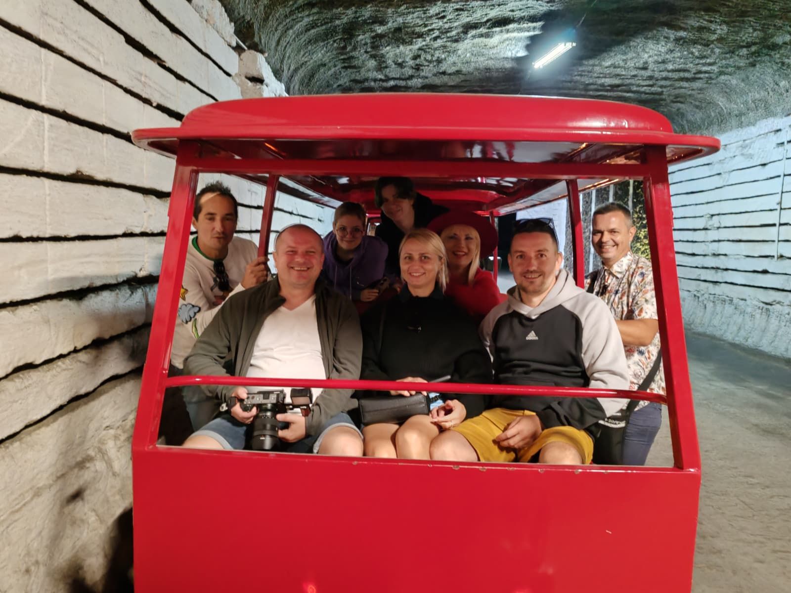 Aşadar am ajuns la Cricova duminică, făcând rezervare de sâmbătă. Am dat 130 de lei de persoană pe un tur al oraşului subteran cu trenuleţul. Am stat o oră şi 10 minute, dintre care 15 minute au însemnat vizionarea unui clip de prezentare cu istoricul cramei, film pe care îl puteţi vedea şi pe siteul oficial. În acest timp am savurat şi un vin spumant.