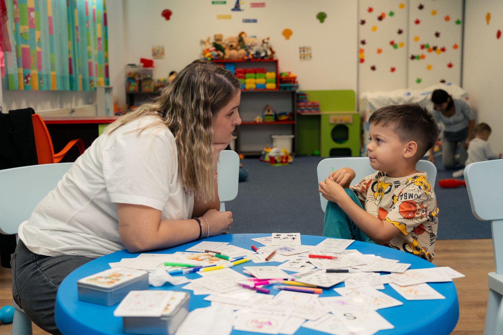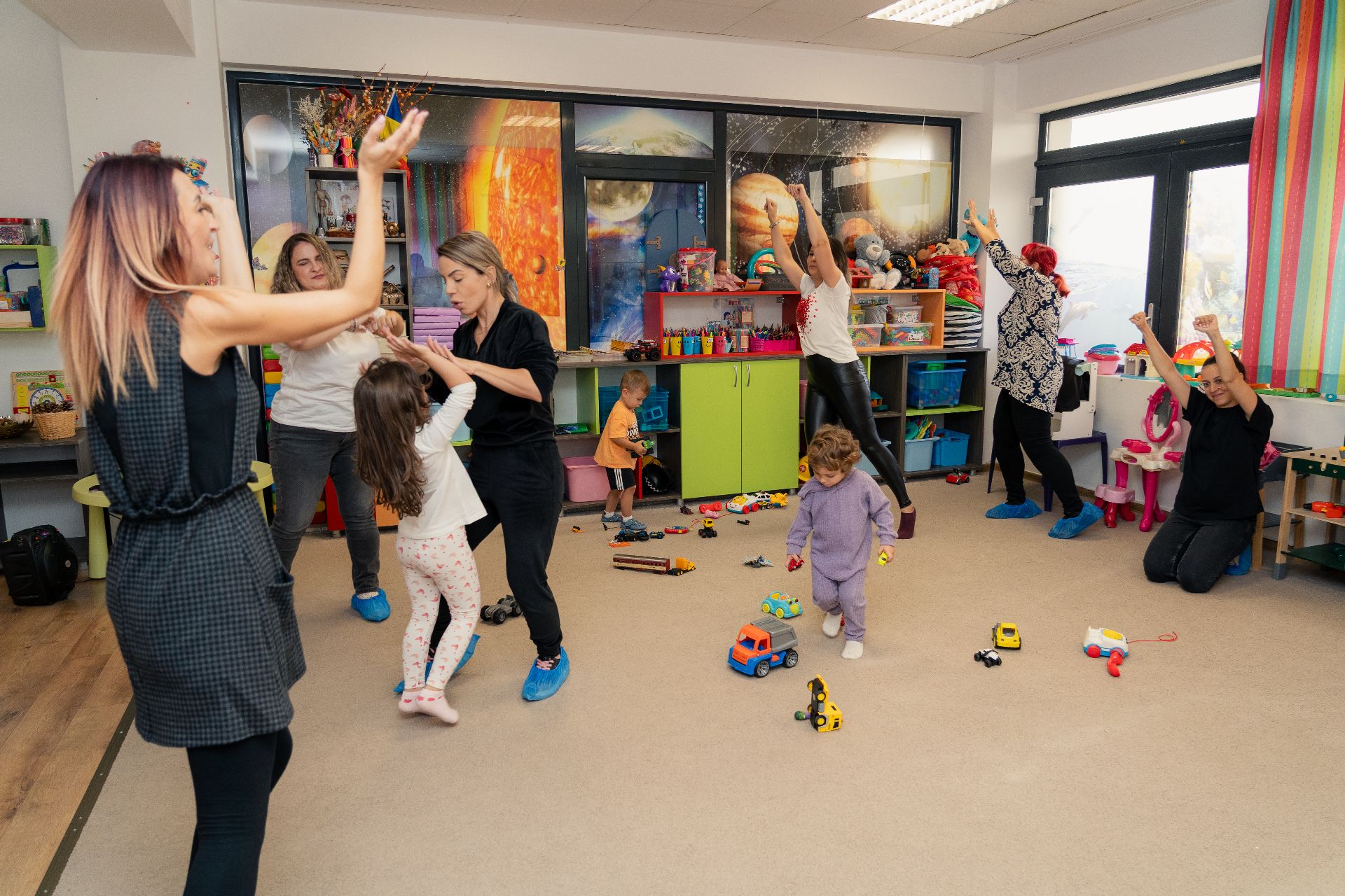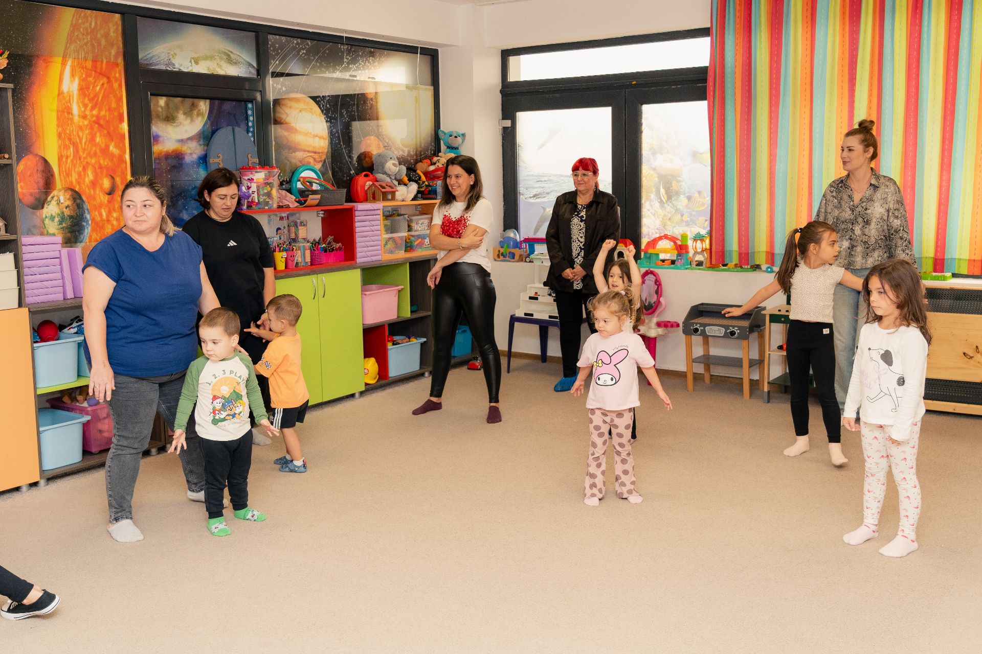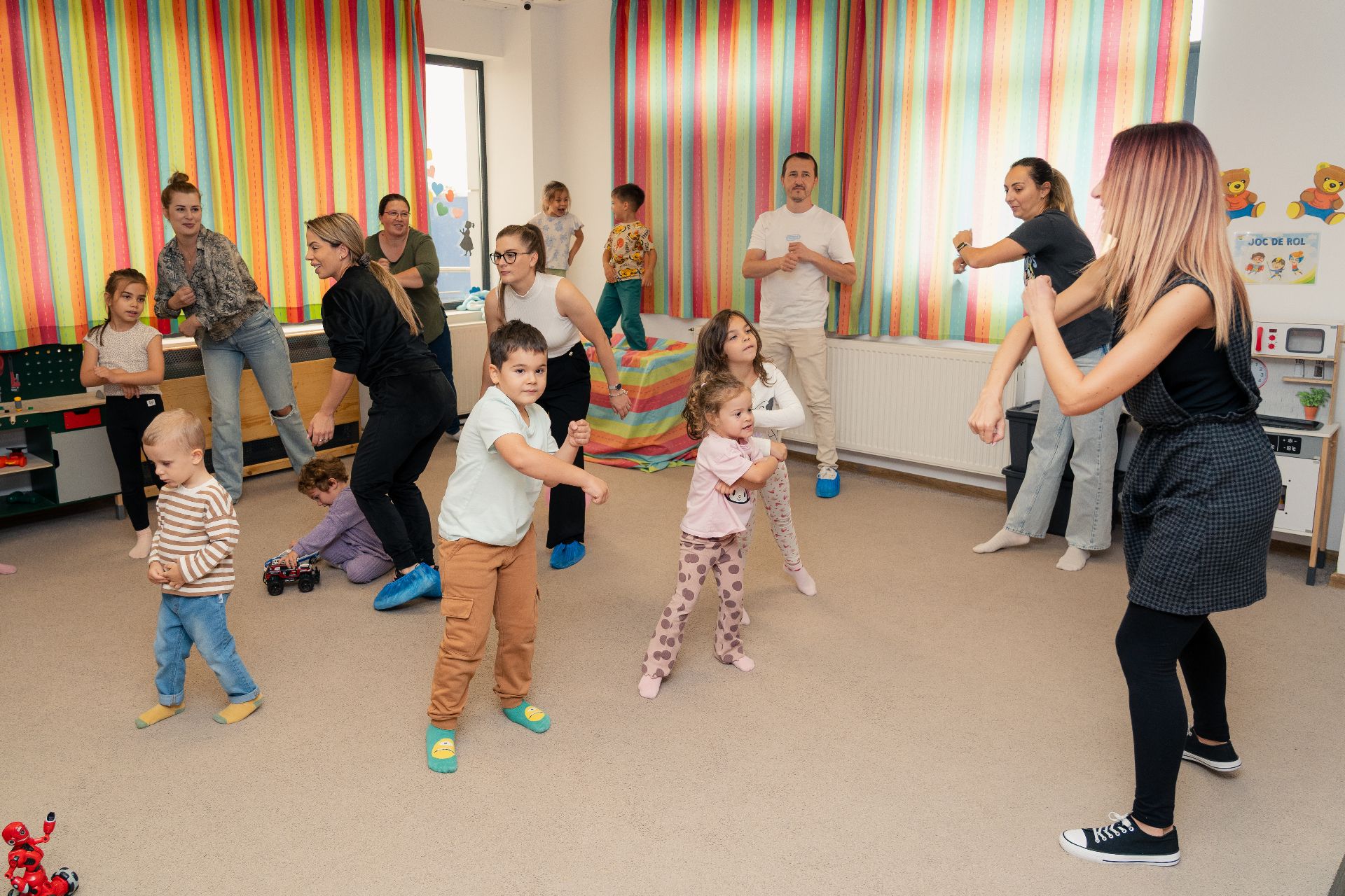 "Am observat că lipsa regulilor şi întâlnirea într-un spaţiu nonformal astăzi le-a adus bucuria de a se juca în voie cu noi şi de a fi aproape de noi. În timpul grădiniţei avem mai multe reguli, suntem mai atenţi pe dezvoltarea cognitivă, iar astăzi am pus mai mult acces pe conexiune, să-i aducem aproape", a explicat educatoarea Mădălina Jilăveanu.