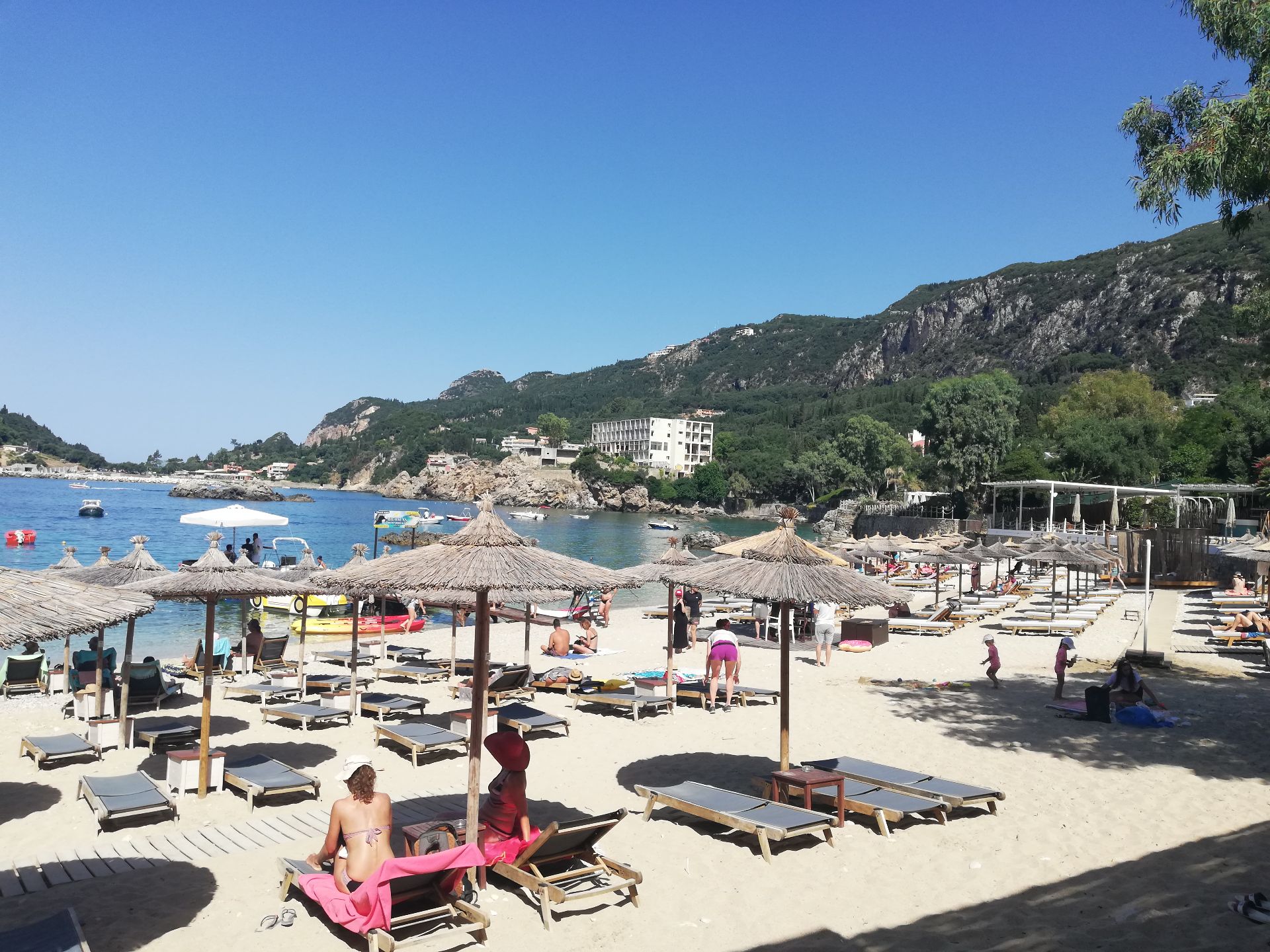 Căldura ne-a limitat mult plimbările, dar chiar şi aşa, cu maşina cu aerul condiţionat la maxim, tot am ajuns pe câteva plaje frumoase, din multele pe care le are Corfu. Pe insulă sunt plaje cu nisip, dar şi cu pietre şi pietricele, după cum sunt şi din cele stâncoase. Cele din partea vestică oferă peisaje de vis. Noi am ajuns doar la Agios Gordios şi Paleokastritsa, dar şi celelalte plaje din Glyfada, Liapades sau Ermonas sunt foarte frumoase. Satul Pelekas e vestit pentru apusurile sale de vis.
