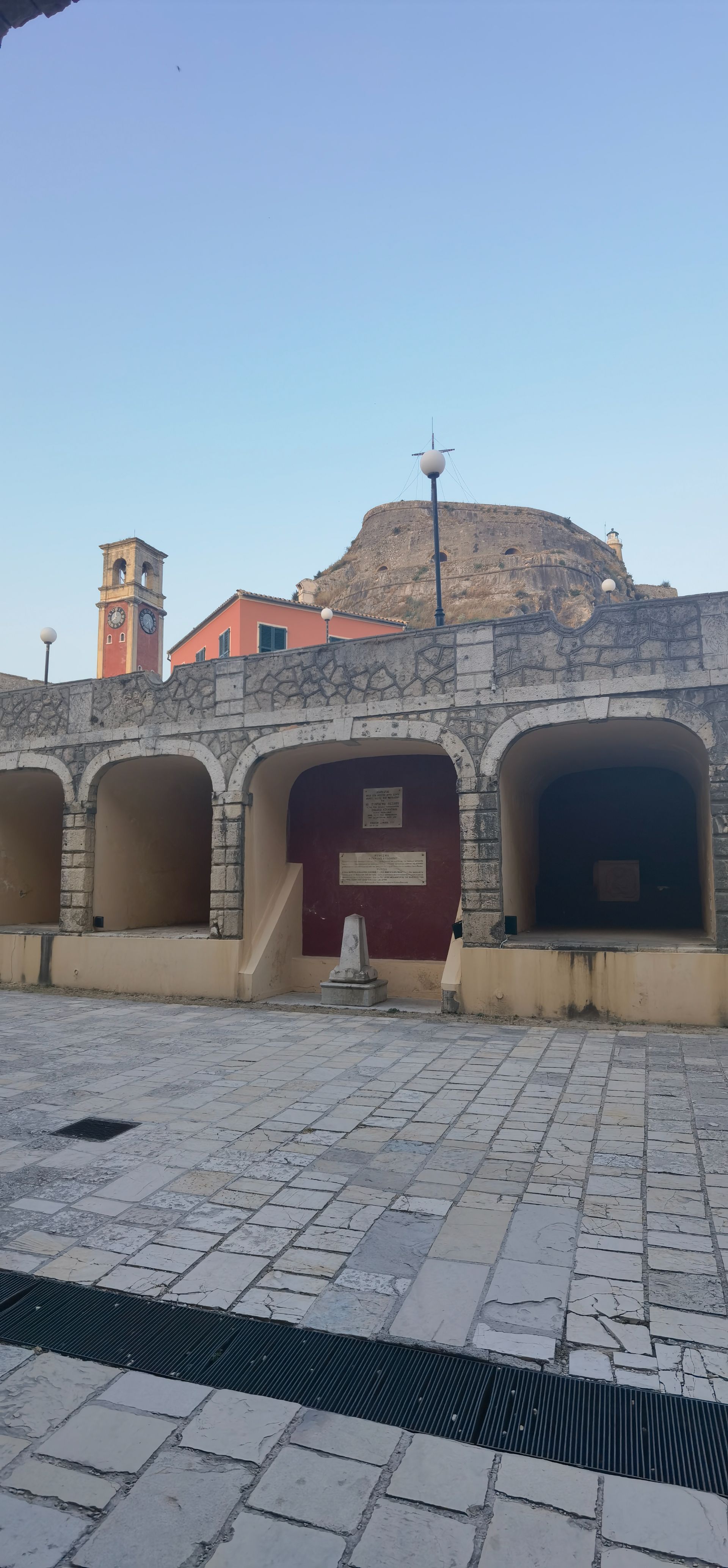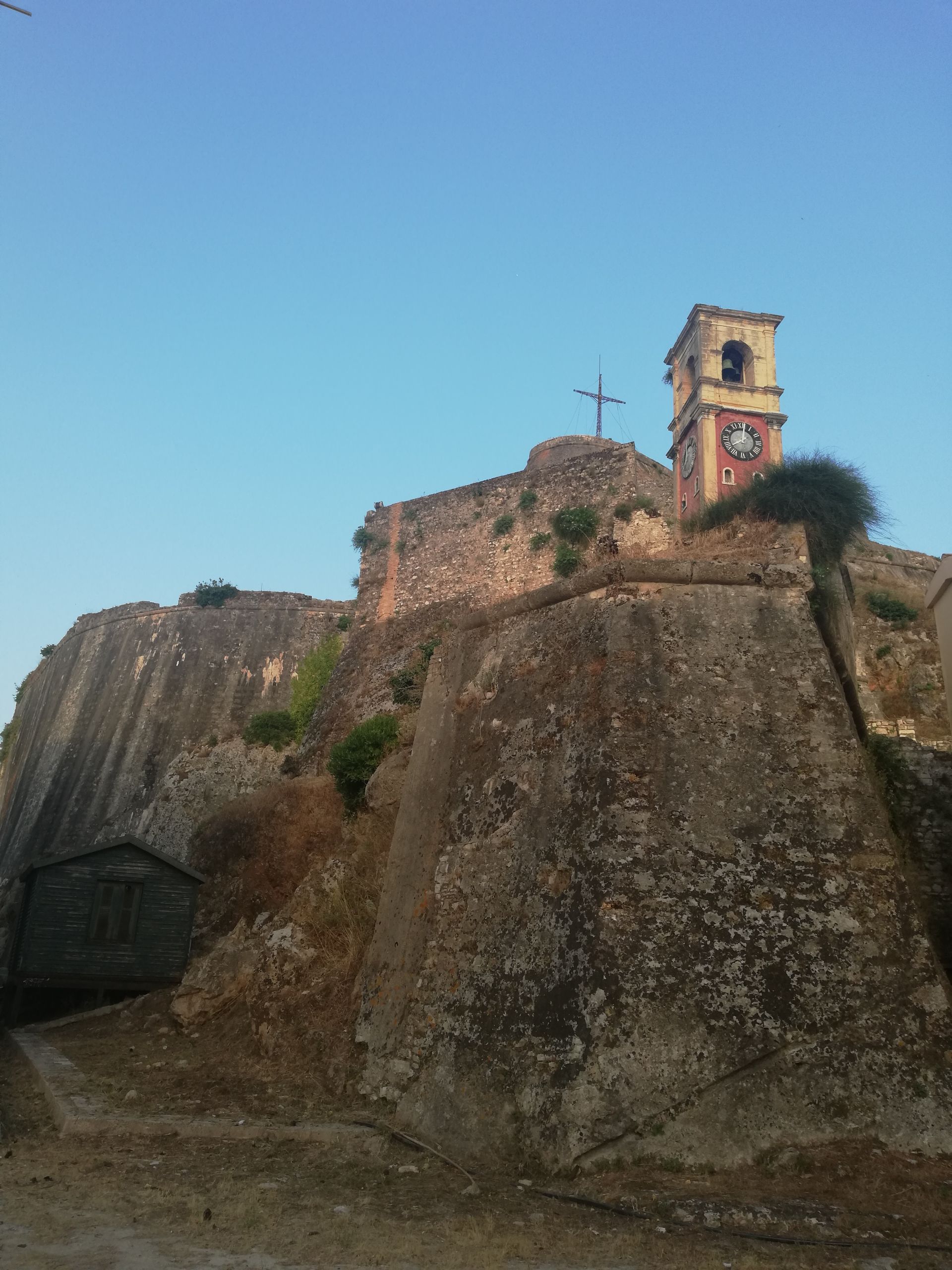 Corfu are două cetăţi, ambele vechi, deşi locuitorii le spun uneia noua cetatea, iar celeilaltea vechea cetate. Noua cetatea construită de veneţieni este în apropierea vechiului port, iar cea veche, din est, se află la un golf distanţă. Ambele scrutează marea de pe două coline paralele.